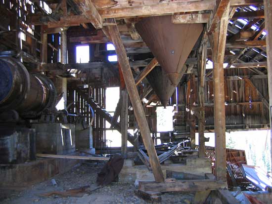 Another mile and a half will bring you to the gate at the Champion Mill property. You will not be able to drive beyond this point. Just past the gate is a refurbished miners cabing.