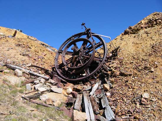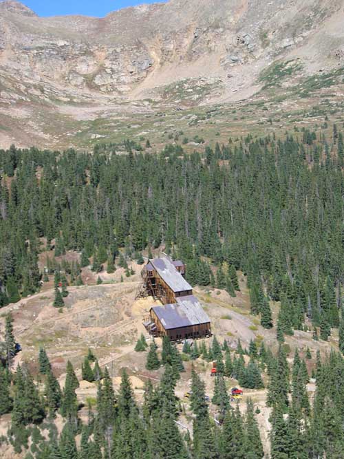 The Champion Mine property was discovered in 1881, but was not developed until 1907 when the Mount Champion Mining Company purchased the property and started construction of a 50-ton per day mill and a 6,100 ft. long tramline. It is believed to be one of the first to pass over the crest of a ridge with an altitude of 13,600 feet at its highest point. Towers were constructed of wood, varying in height and design. These towers were built together to make a long curve for the cable. Electricity brought from Leadville powered the tram, equipped with forty-two buckets, each weighing about 600 pounds and capable of holding nine cubic feet of the precious ore. The high grade ore was shipped directly to the Smelters in Leadville. Significant production started in 1912 and continued until 1918. The Champion Mine was dormant from 1919 to 1936 because the cost of shipping ore to Leadville Smelters proved to be unprofitable. From 1937 to 1940, the property was leased by Elmer Paustian who reopened the mine. Eight men were employed in the operation. In 1940, problems arose in the lease agreement, forcing Paustian to stop. The Champion Mine and Mill are examples of Colorado mining history and it has been placed on the National Historic Register. The recorded production from the Champion Mine during 1912-1940 was 27,032 oz gold, 12,731 oz silver, 30,690 lb copper, and 97,839 lb lead; there are no records of production after 1940. The road from the Champion Mill to the Champion Mine, which is snow covered most of the year, had been graded in the mid 1980's. To see Historic Photos click on the link. |