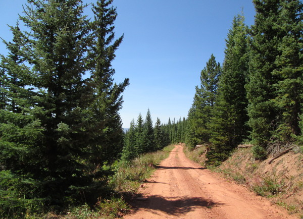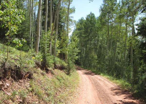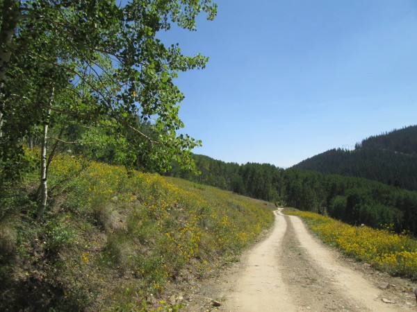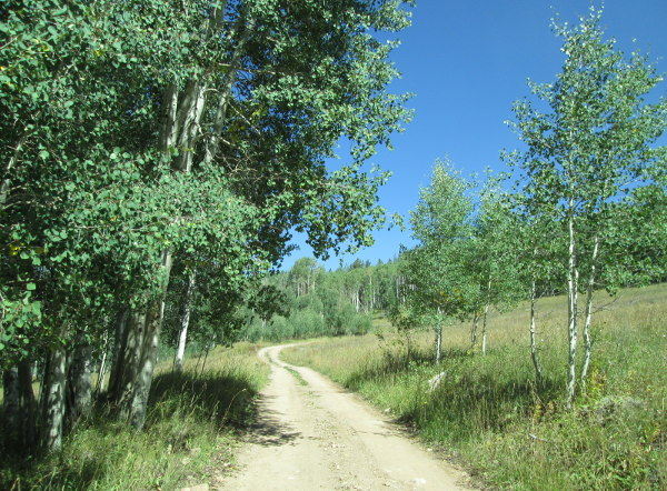 Starting from the Crooked Creek Pass end of Hat Creek road, you will cross an open meadow before entering the aspen forest after making the first of a series of switchbacks that climb onto the ridge between Spine Creek and Crooked Creek.