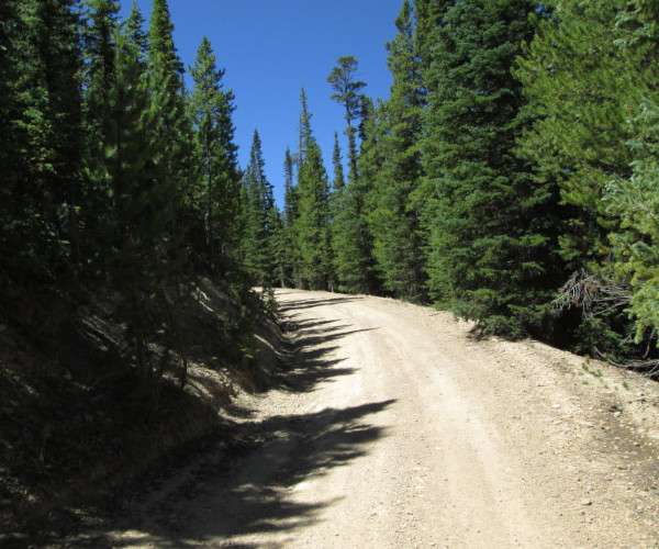 The road stays maintained and fairly level as it runs across small gulches heading north. You will head through the pine forest for over three miles before coming to another spot where FT1226 crosses the road.