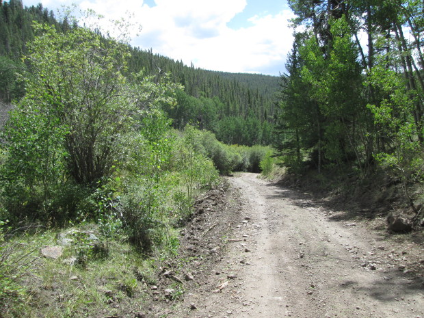Be aware that the Lujan road is part of the Continental Divide National Scenic Trail, so there will be hikers using the road. Watch for them at curves in the road, or other blind spots as you travel this road. After leaving Hwy 114 the Lujan road will be graded as it follows the creek. At about a half mile you will come to an intersection to the left which is the Slane Gulch, FR816, road. Continue on the graded road as it follows the creek.