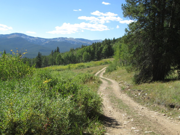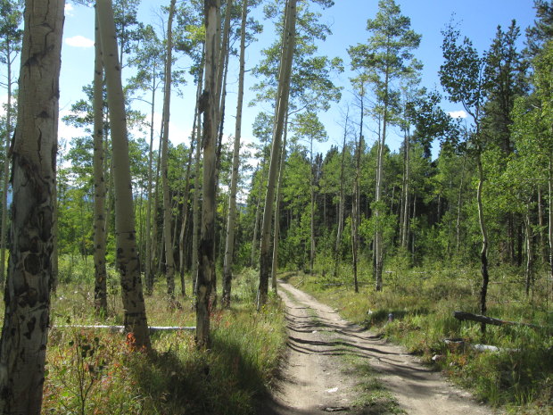 Starting from the west end off of CR18, E Tennessee Road, you will cross a short open area and enter a small group of pine trees. There are two dispersed camp sites in the trees here. The two track road will continue int aspen trees passing two more dispersed camp sites. All of these camp sites are in the first half mile. The road will continue up a small gulch through larger aspen trees.