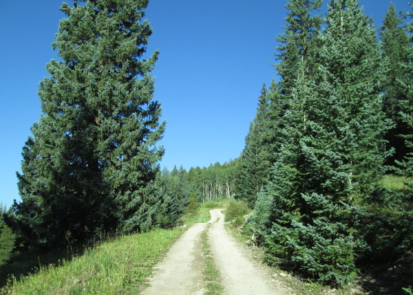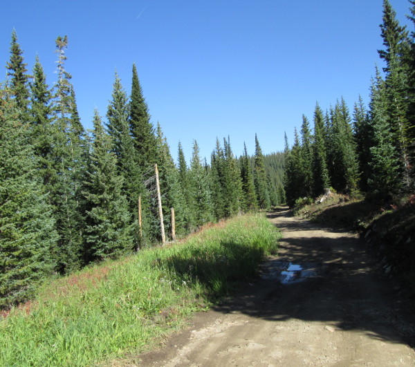 The road is a two lane graded gravel road that will cross over a ridge and drop down into the Nolan Creek drainage.