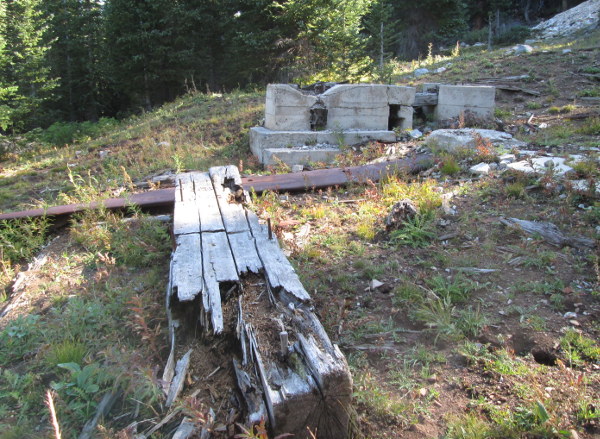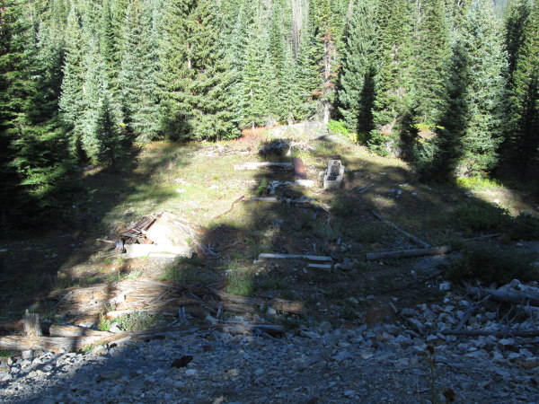 Beyond the trailhead the road goes a short distance to a berm that blocks the road. From this point you are about 400 feet below the remains of the Polar Star Mine.