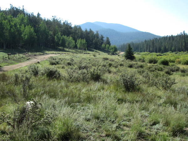 After about three miles you will come to an intersection. To the right is West Packer Gulch, FR209, which heads out toward private property and County Road 23. Stay to the left to stay on Packer Gulch 4WD road. It iwll head into a narrower valley as it heads toward Farnum Mountain. At the southeast end of Packer Gulch, the road will climb into the forest and come to an intersection with Schoolmarm Mountain, FR237. The Packer Gulch road will turn right and continue to climb up a series of switchbacks to the head of Packer Gulch on the west side of Farnum Peak.
