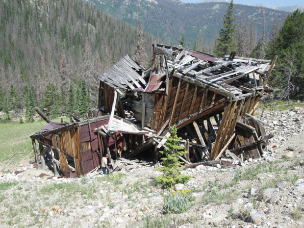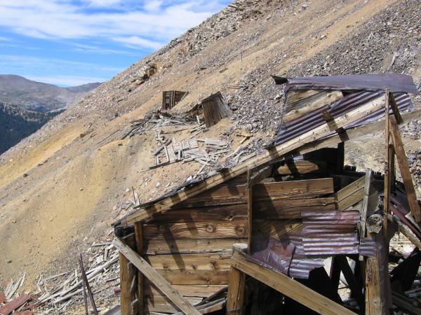 Romley, on the way to Hancock along the Denver, South Park and Pacific Railroad, was founded in 1886 and served the Mary Murphy mine up Pomeroy Gulch. Originally called Murphy's Switch, Romley had more than 1,000 residents. The name Romley came from an inversion of one of its later owner's last name, Colonel B.F. Morely. At Romley the ore shoots and mine office were above the railroad grade,while the town with its post office, school house and miners homes was below the railroad grade in a wide meadow. In the mid 1870s Dr. A.E. Wright and John Royal discovered the Mary Murphy. The mine was named for a Denver nurse that cared for John Royal. After developing the mine the two sold it to a Kansas company that built a smelter in Alpine, down the valley from St. Elmo, to process the ore. The smelter was a failure and the mine was sold again. This time the owners built a smelter at Romley. In 1891 the Mary Murphy aerial tram was built from the mine on Chrysolite Mountain down to Romley. The Mary Murphy became the biggest producer in the Chalk Creek area. The mine was sold again to an English syndicate in 1909. In 1915 a turntable was built in Romley for trains only going to Romley for ore, and not up to Hancock. By 1917 the Mary Murphy's ore was starting to deplete. In 1925 the Mary Murphy Mine closed. From 1870 to 1925, it produced 220 ounces of gold, worth $4.4 million at the time. It also produced a considerable amount of silver, lead, and zinc. In 1926, the railroad tracks were torn up and the railroad grade became a road from Nathrop to St. Elmo, and on up to Hancock. In 1940 the large mill burned leaving the lower tram station standing along the Denver, South Park, and Pacific railroad right of way. Up Pomeroy Gulch the middle tram station, bunkhouse and mine office still stand. High up on the side of Chrysolite Mountain, the upper tram station remains are visible.