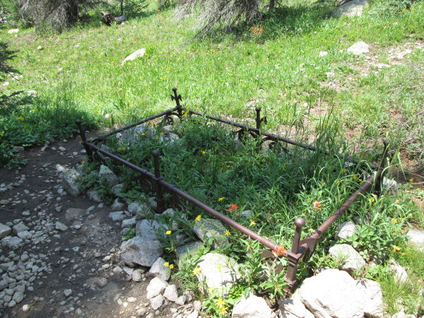 Continue past the intersection on the main road. After going 0.22 miles from the intersection you will come to a grave site on the right side of the road.