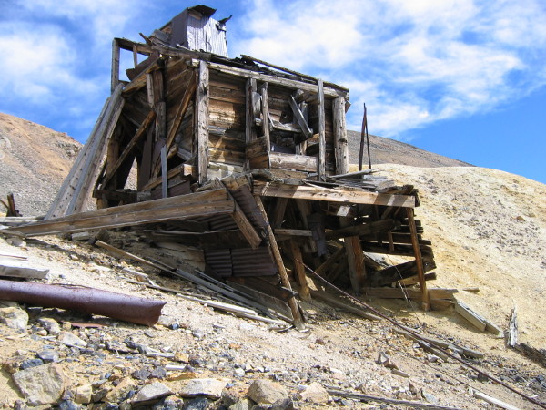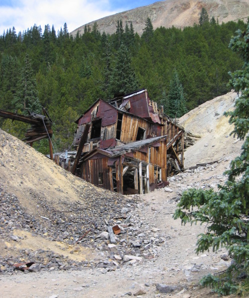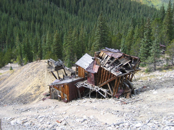 The road will become narrower, just a two track. There will be two spur roads on the left, that are gated, that go up on top of the reclaimed tailings. A quarter of a mile from the tailings roads you will come to another intersection with a spur road on the right that goes to a private cabin. Another quarter of a mile and you will pass a camp site on your left followed by another spur road on your left. This road is not on the Motor Vehicle Use Map, but it goes back north up onto Chrysolite Mountain to the upper portal of the Mary Murphy mine. There are only a few building remains at the mine.