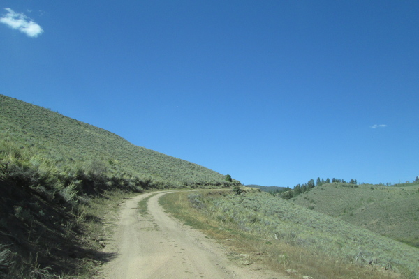 Stay to the left and head down off the ridge, crossing Blacktail Creek. You will follow the creek and come back into a small grove of aspen. There will be a dispersed campsite on your right. Past the campsite the road will stay in the aspens. You will come to a road on your left that goes to a private home. The property on the east side of the road is private along this stretch. As you come out of the aspens you will pass another dispersed campsite on your right. The road will drop down and pass a spur road on the right that goes to a dispersed campsite, then cross the East Fork of Blacktail Creek twice before climbing up a shallow gulch to top out on a large flat open area.