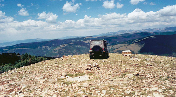 The Resolution Mountain 4WD road leaves the McAllister Gulch 4WD road and immediatly starts to climb to the top of Resolution Mountain. The road is rocky with loose sections and rutting. As you get closer to the top it gets a bit steeper. Once on top of Resolution Mountain you will have great views of the surrounding mountains. The top is a large area with room for many vehicles.