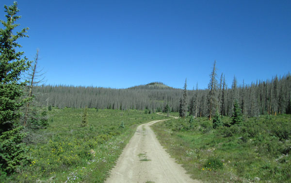 Continue on FR610 climbing up the valley. The road will do a few switchbacks as it works down to cross East Creek. After about two miles you will come to the next intersection with Middle Park, FR612. Once again stay on FR610 as it follows Difficult Creek. The next intersection is with West Middle Park, FR613, after about 2 miles. Stay on FR610 which becomes much smoother and better maintained. You will pass large open meadows as you work along the south side of Pool Table Mountain.