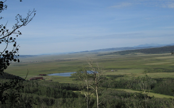 The road will stay a two track as it heads northwest along the side of the ridge. At the first curve in to cross a side gulch you will come to an intersection. The road coming in on the right is the T-Pit, FR811, road, stay left here. There will be a few openings in the trees where you will get views of South Park.