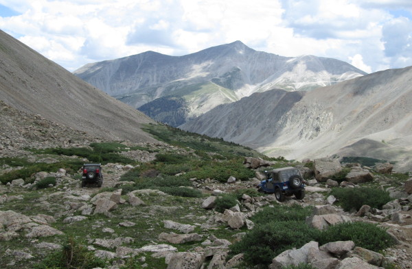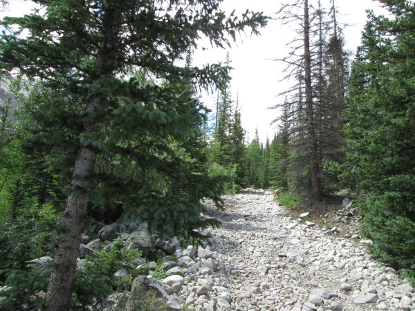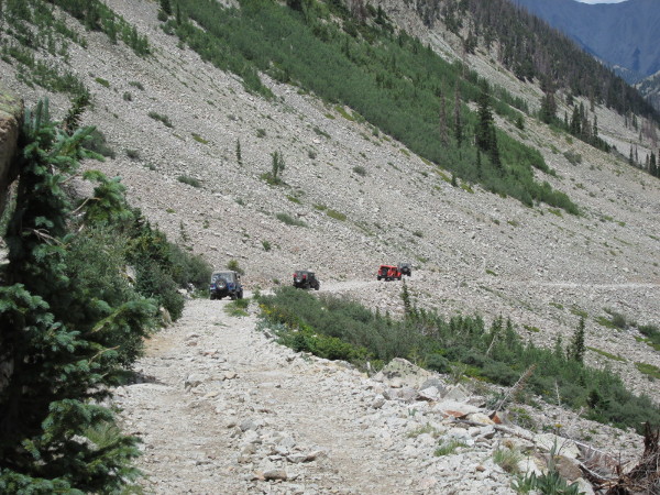 The road will continue in the trees for a while as you drive over rock outcrops. There will be one larger rock outcrop to get up before you come back out into the open and cross a long talus slope.