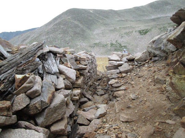 The road turns north here and heads across the rocky low hills of the cirque. You will do a bunch of short switchbacks as you gain ground climbing higher into the cirque. The road will be a two track through the shcrub crossing large and small rock outcrops and steps. Finally the road will end at a mine at the head of the cirque between Grizzly Mountain and Mount Mamma.