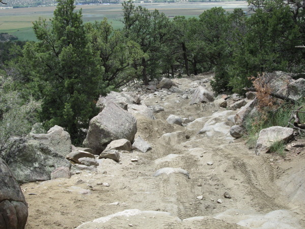 Past the Chute the road will head to the west climbing slightly. The road will then head south and begin to drop down hill and become a bit challenging again.
