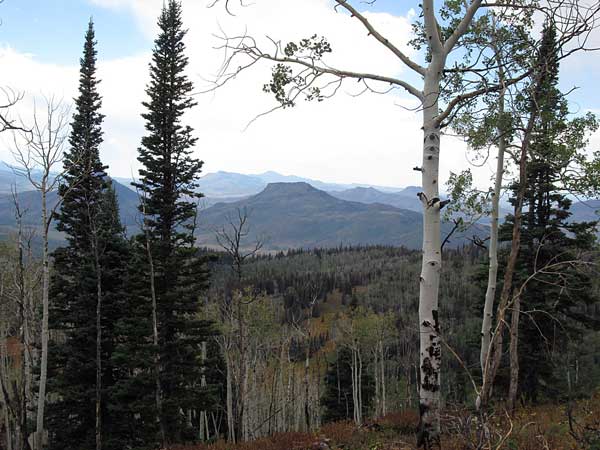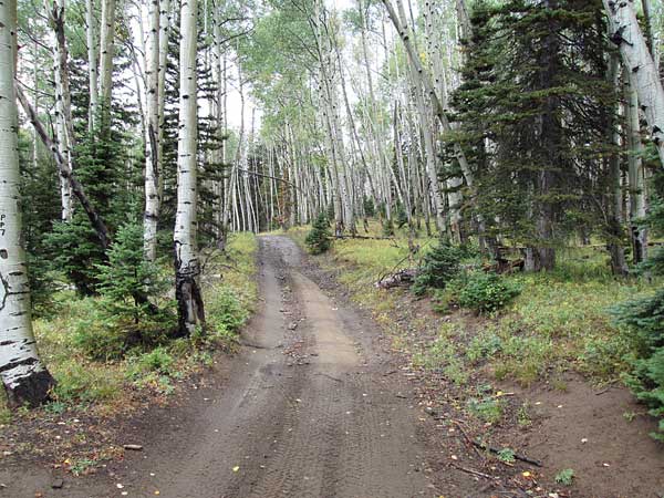 | Elk Horn Mountain, starting from the east end, is a graded road that gently climbs from the Whiskey Park, FR550, road into the forest. It passes a few campsite as it crosses a small meadow. After about a mile you will pass an intersection to the right for FR508.1C, which is a very short spur road, and then shortly after you will come to an intersection with FR508.1A to the left. This spur road is over a mile long and ends after a long swtichback. Continuing on FR508, after a mile and a half you will come to the Whiskey Park Trail Head for motorcycles only. There will be a camp site in this area as well as a water crossing. You will be in the aspen forest as you climb up Elkhorn Mountain