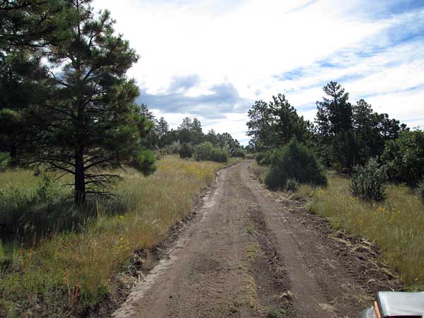 The road is a two track that winds through the forest along a broad ridge. It gets narrow through the trees in some sections. In 2015 it had recently been maintained.