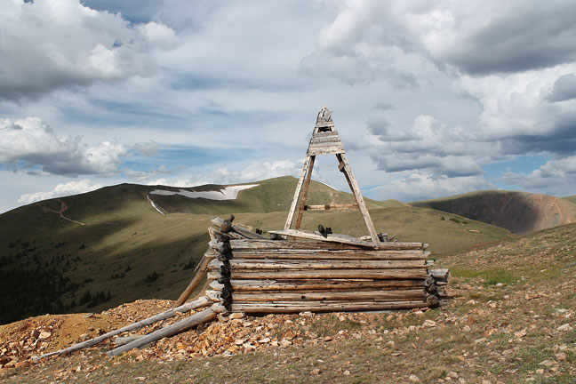 There will be steep sections that are cut with ruts from vehicle traffic. As you come out of the trees you will pass a large mine and its tailings on the left. Just after this the road will come to an intersection out in the open. The road to the right is a short spur road to the mine and cabin on Wise Mountain.