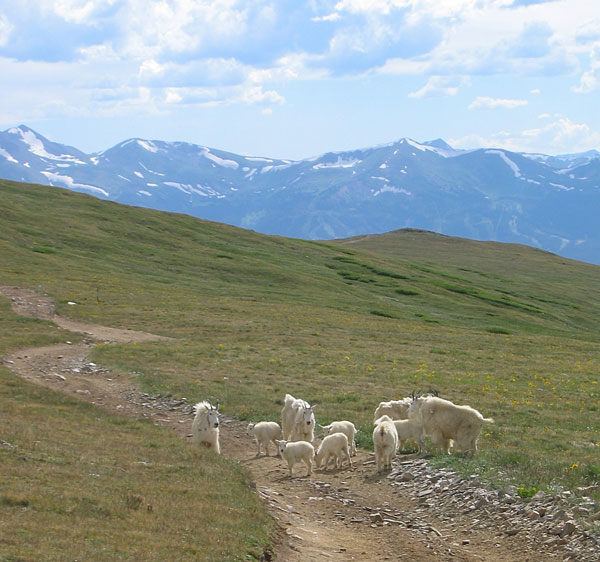 The left will head north east toward an imposing hill climb. There are two routes up, the left being less steep than the right. There will be some larger rocks to deal with as well. From here the road continues along the ridge coming to a steep down hill above the Middle Fork of the Swan River Valley. Again there will be some larger rocks and drop offs. Once down you will cross a large open area with cliffs to the right. Be on the look out for mountain sheep.