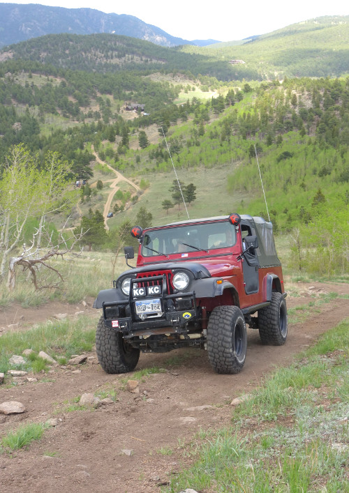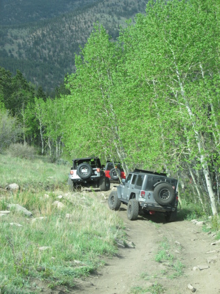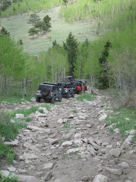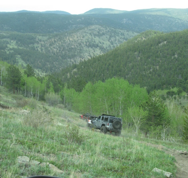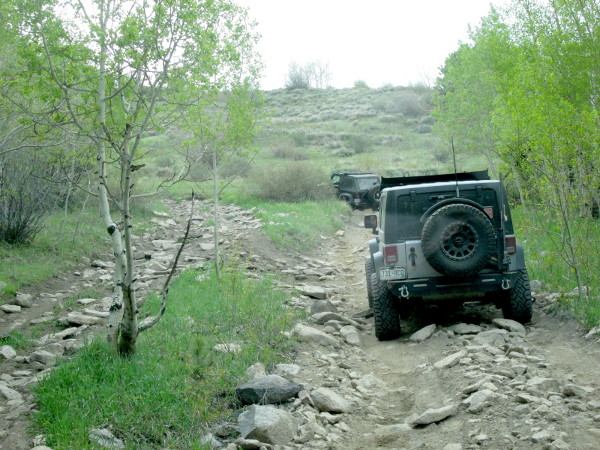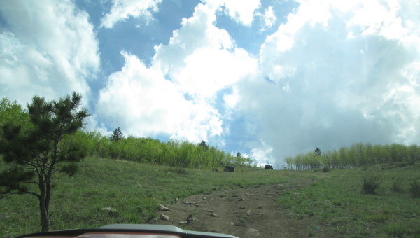 The Knob road is a short climb up to the top of a hill along the Switzerland Trail route. It ends in a small saddle between two high spots. From where you leave the Switzerland Trail you will have a good view of the steep hill climb through the aspen trees. The road gets rocky right away. As you climb through a few aspen trees you will have a small challenge to climb.