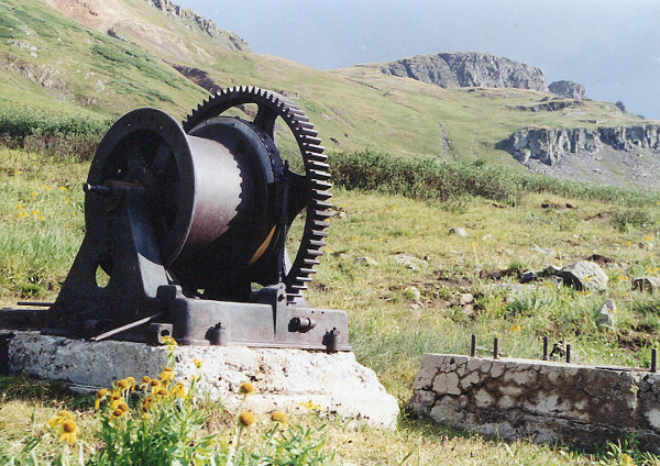 Back at the intersection, the right turn will climb four switchbacks passing some mine remains before coming to the more modern mining remains of the Empire Mine.