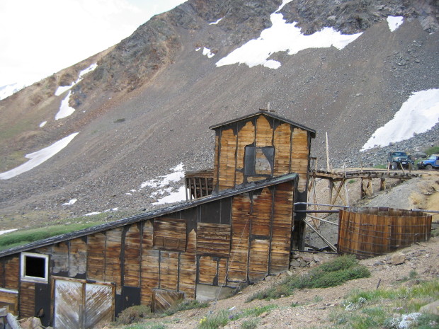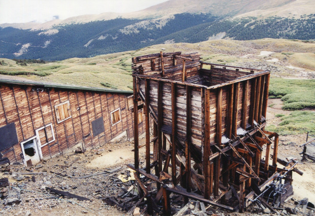 History: | Mining was happening as early as the 1960s in the Leavenworth Creek valley. This was to be known as the East Argentine Mining District. In 1864, Edward John Wilcox discovered a large deposit of silver sulfide and began developing a mine under the name of Waldorf Milling and Mining Company. A large boarding house was built, as well as a small store, stable and machine shop. Waldorf, at 11,666 feet, began to take shape. In 1868 the Big Stevens mine was discovered on the other side of McClellan Mountain. In 1905 Wilcox needed cheaper transportation for his mine, so he started construction of the Argentine Central Railroad, beginning at Silver Plume. The railroad was a risk being at such a high altitude. By 1906 the railroad was completed to Waldorf where a depot and water tank were constructed, and a tiny post office was started, being the highest in the United States. This was a beautiful and thrilling railroad ride, with some of the curves at 145 degrees and grades of 10 percent.The tracks were then extended to the Vider Tunnel, which was being developed for mining and as a transportation route under Argentine Pass. If it had been completed, Waldorf would have been connected to the mines in the Peru Creek area. Link to an image of the Waldorf Mine and town, 1910. Link to an image of Waldorf looking northeast, 1910. Link to an image of the Waldorf and Vider Mines, 1910. Argentine pass is right of center in the photo. Link to an image of the Waldorf Mill, 1941. In 1898 William Rogers discovered the Santiago Mine 500 feet above Waldorf. It is most likely named due to the capture of Santiago, Cuba at this time during the Spanish-American war. The mine became most productive in the early 1900s. The ore from the area mines was milled in Waldorf and then transported down to Silver Plume to be smelted. The income was not enough to keep up with the cost of this process, so the railroad was extended close to the top of McClellan Mountain as a tourist attraction. The end of this extension was at 13,040 feet, allowing you to take a train to withing walking distance of the top of a mountain.
