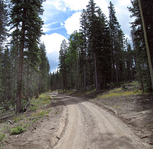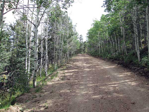 The road will continue to climb looping around some low hills covered with aspens. It will work its way toward the head of Deer Lick Creek.