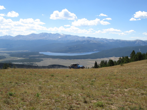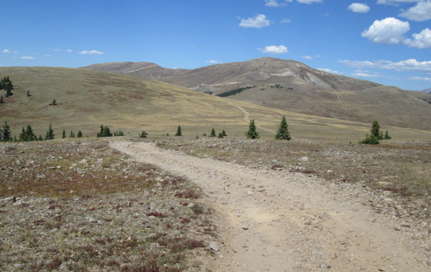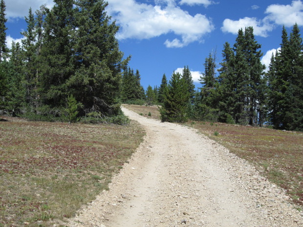 The road to the left from the T goes to some communication towers. Stay to the right. From hear you can look back down toward Turquoise Lake. The trees will start to thin as you continue.