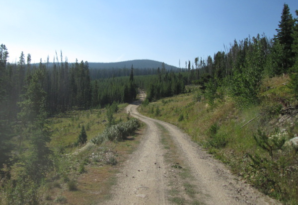 | Starting from the east end off of the Teller Divide, FR740, road you will drive across a bridge over the South Fork of the Michigan River. The road will be about a lane and a half wide. You will head up the little valley of No Name Creek passing a campsite on the right. Further along the road you will come to an intersection on the right with FR793. At this intersection near the creek is another campsite where FR793 heads north west for about a mile. Stay to the left at the intersection and you will make a hairpin turn to the east followed by a wide curve that brings you over near La Fevre Creek before climbing higher up on the ridge and then continuing to following No Name Creek. The road will stay maintained as you climb higher along the north side of Owl Mountain. At another hairpin turn you will cross No Name Creek and continue west where you will come to another intersection. The road to the left is No Name Creek, FR790, road that will climb up to the top of Owl Mountain ridge. Stay to the right to continue. The road will continue through the forest and cross the head of Mill Creek at another curve. The road will come out into an area that has been thinned on the right side of the road. As you come back into the forest you will pass two spur roads on the left that are closed and only used to access other areas that have been thinned.
