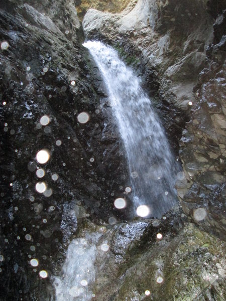 Here you will have to walk in the creek in order to get a view of Zapata Falls. It is best to have water shoes to hike in the creek as the rocks can be slippery. The water in the creek will be cold. Zapata Falls is a 30 foot waterfall tucked back in a short tunnel in the rock where the water funnels down from the creek high above.